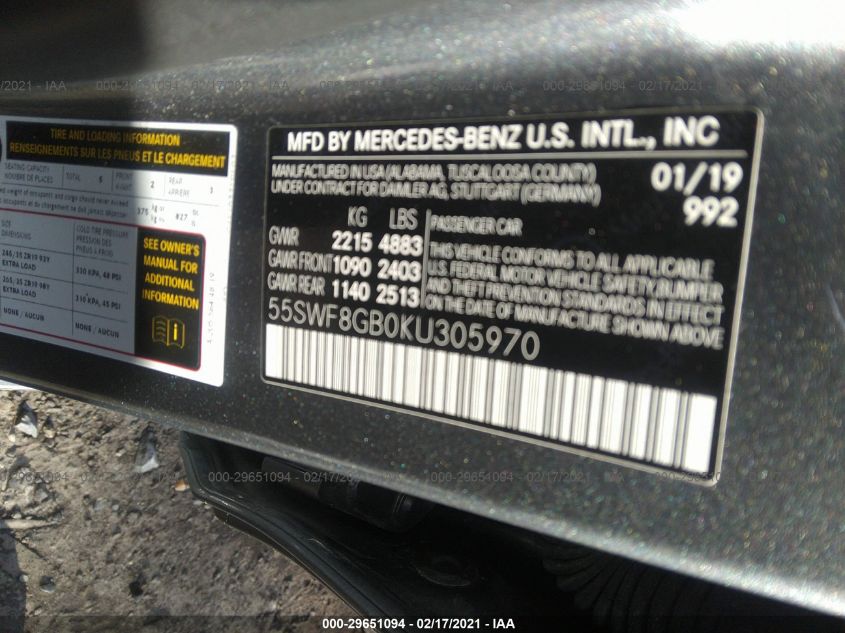 2019 MERCEDES-BENZ C-CLASS – 55SWF8GB0KU305970