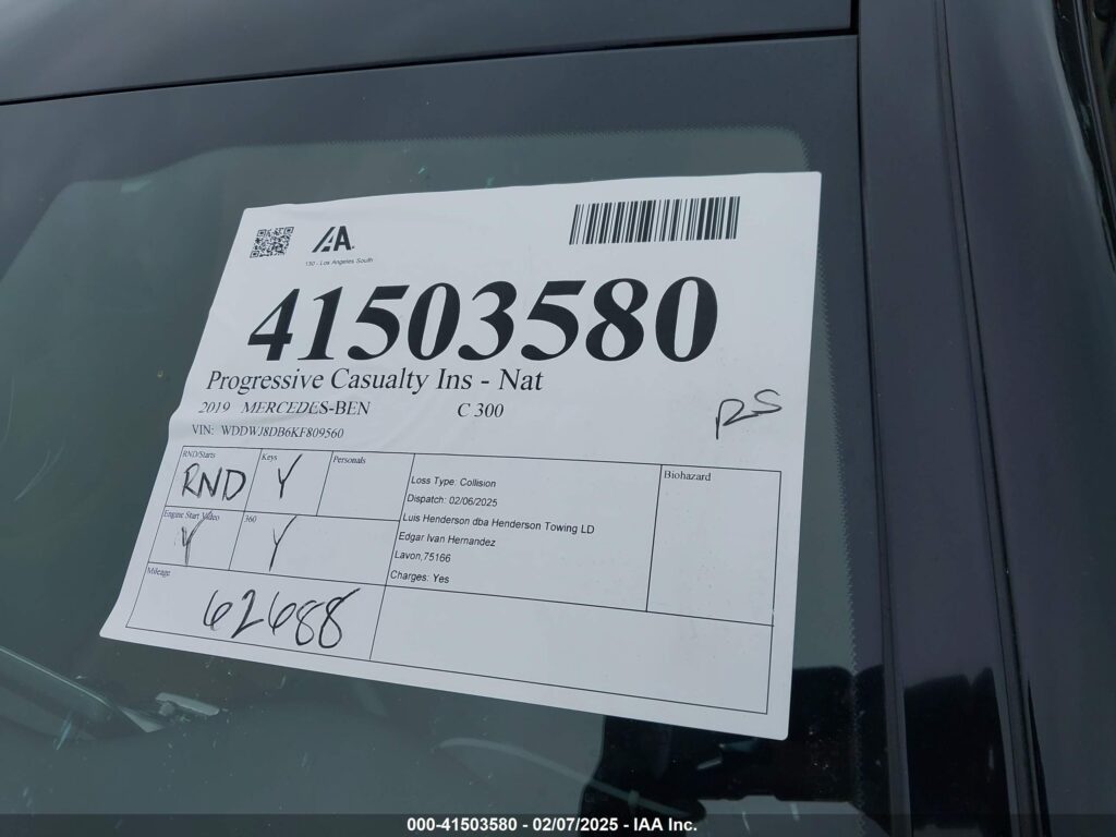 This 2019 Mercedes-Benz C-Class (Black) comes from a major insurance auction in the USA or Canada. All information on this page is linked to the vehicle’s VIN (WDDWJ8DB6KF809560), which helps confirm where the car was listed and what condition it was in at the time of sale.