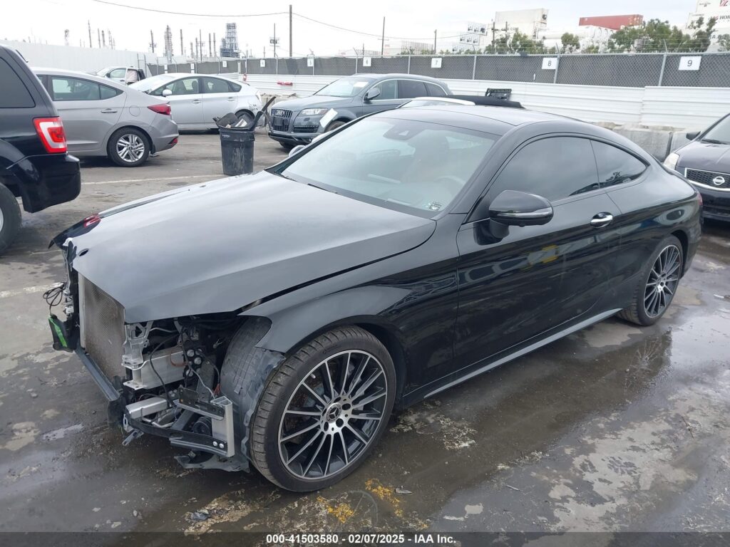 This 2019 Mercedes-Benz C-Class (Black) is equipped with an engine designed to balance performance and efficiency. According to the auction listing, the vehicle had 62,688 miles at the time of sale.
