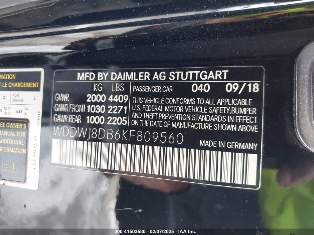 | VIN Number | WDDWJ8DB6KF809560 |