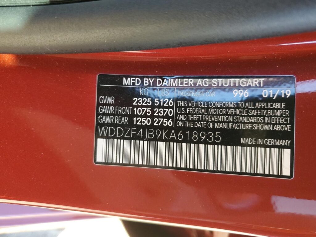 2019 MERCEDES-BENZ E-CLASS – WDDZF4JB9KA618935
