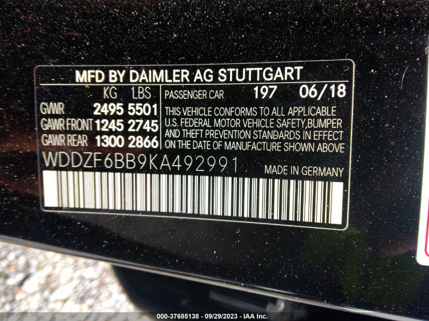 2019 Mercedes-Benz E-Class – WDDZF6BB9KA492991