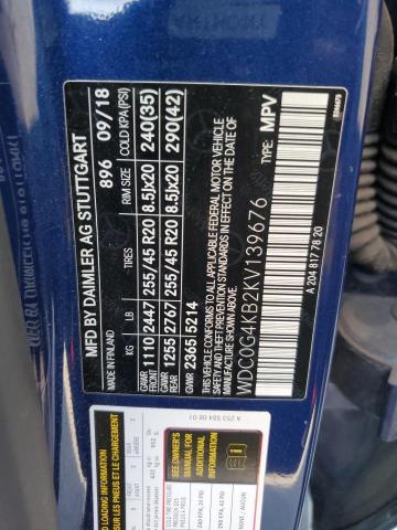 This 2019 Mercedes-Benz GLC-Class (Blue) comes from a major insurance auction in the USA or Canada. All information on this page is linked to the vehicle’s VIN (WDC0G4KB2KV139676), which helps confirm where the car was listed and what condition it was in at the time of sale.