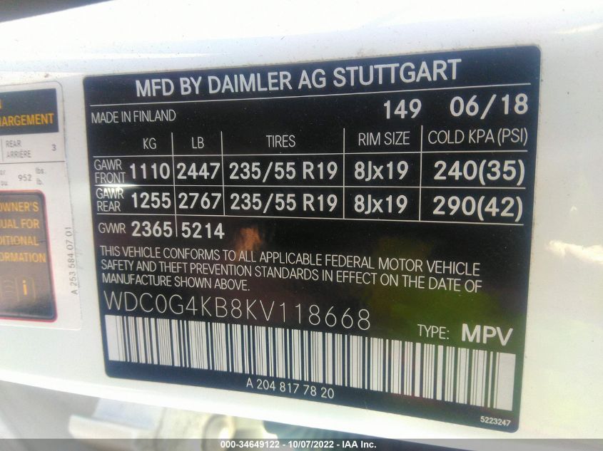 2019 Mercedes-Benz GLC-Class – WDC0G4KB8KV118668