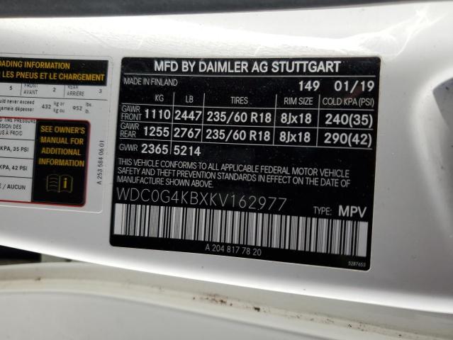 This 2019 MERCEDES-BENZ GLC-CLASS (WHITE) comes from a major insurance auction in the USA or Canada. All information on this page is linked to the vehicle’s VIN (WDC0G4KBXKV162977), which helps confirm where the car was listed and what condition it was in at the time of sale.