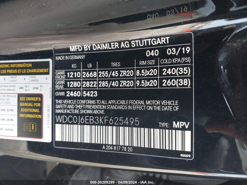 VIN: WDC0J6EB3KF625495
