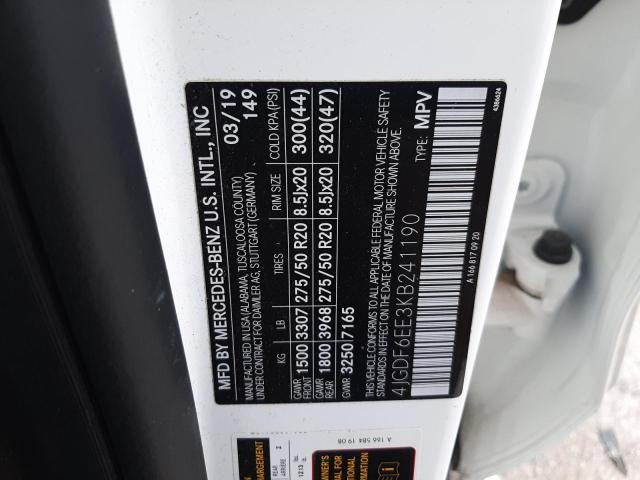 This 2019 Mercedes-Benz GLS-Class (White) comes from a major insurance auction in the USA or Canada. All information on this page is linked to the vehicle’s VIN (4JGDF6EE3KB241190), which helps confirm where the car was listed and what condition it was in at the time of sale.