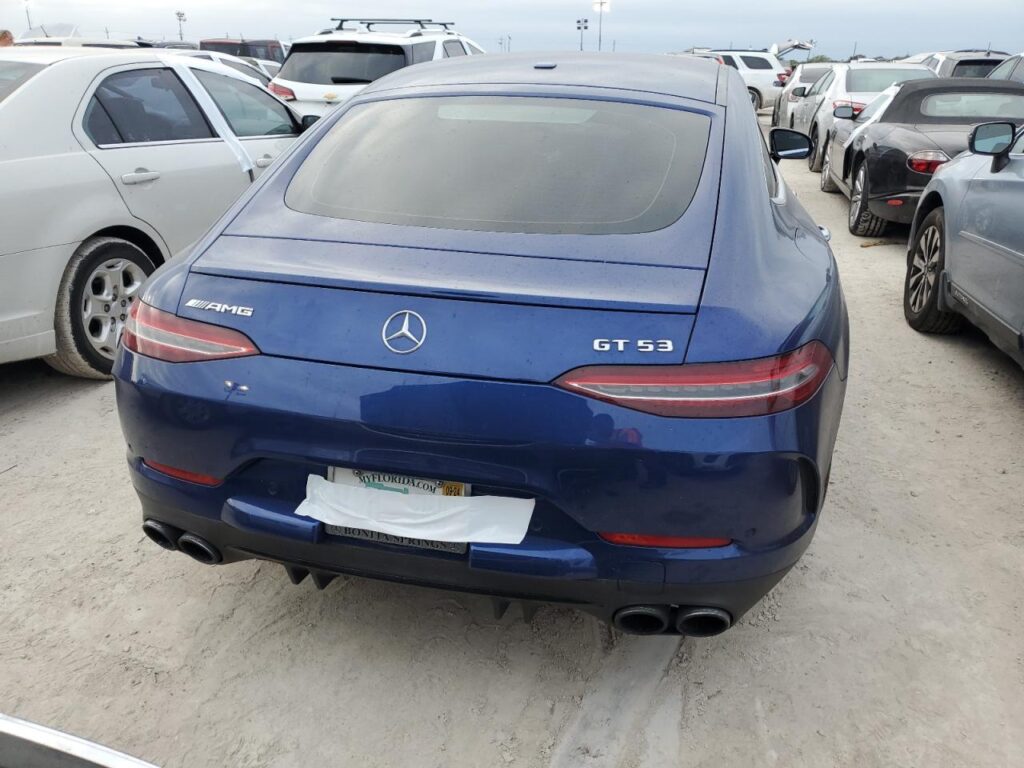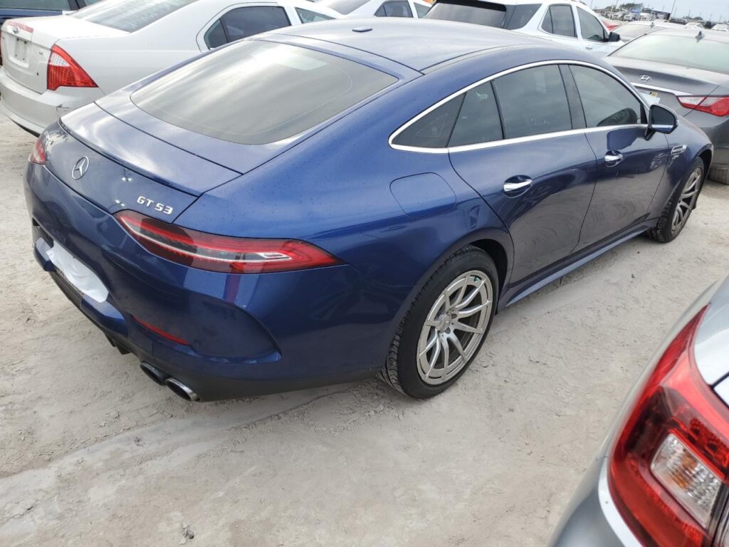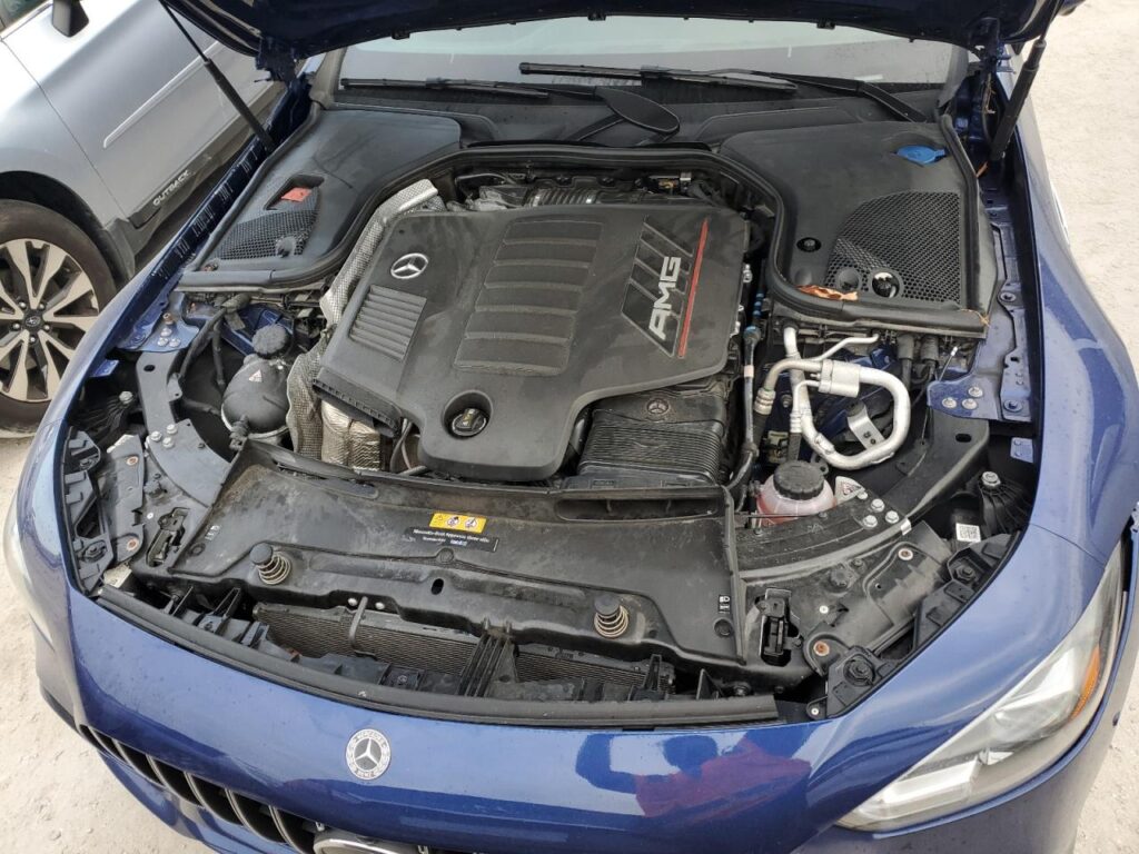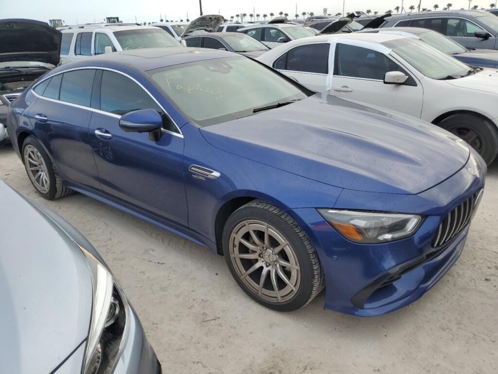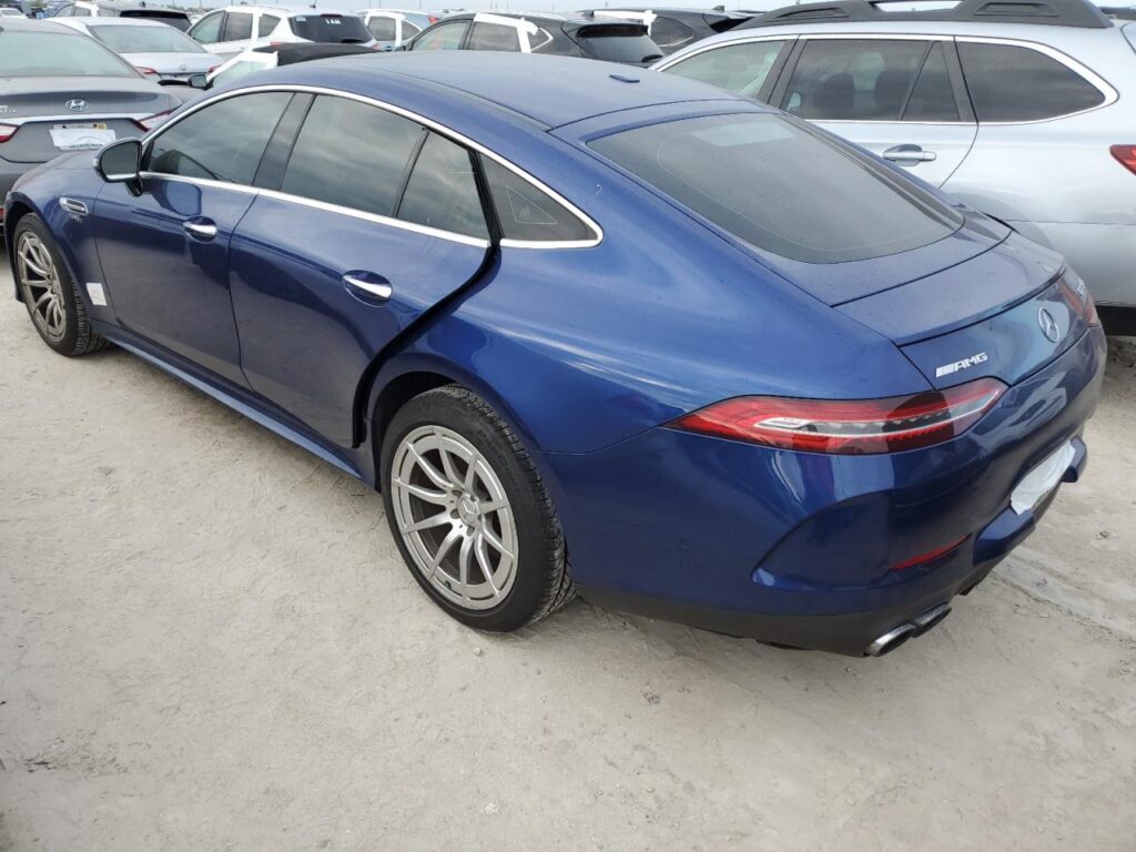 This 2019 Mercedes-Benz Gt-Class (Blue) is equipped with an engine designed to balance performance and efficiency. According to the auction listing, the vehicle had 56,442 miles at the time of sale.