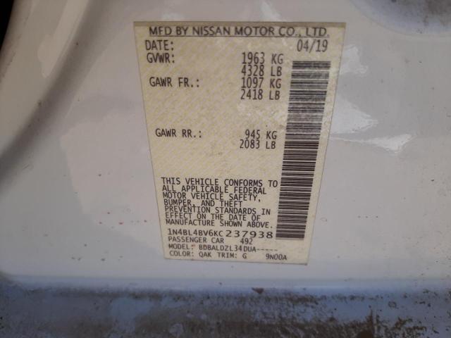 This 2019 Nissan Altima (White) comes from a major insurance auction in the USA or Canada. All information on this page is linked to the vehicle’s VIN (1N4BL4BV6KC237938), which helps confirm where the car was listed and what condition it was in at the time of sale.