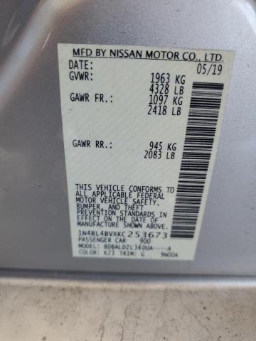 This 2019 Nissan Altima (Silver) comes from a major insurance auction in the USA or Canada. All information on this page is linked to the vehicle’s VIN (1N4BL4BVXKC253673), which helps confirm where the car was listed and what condition it was in at the time of sale.