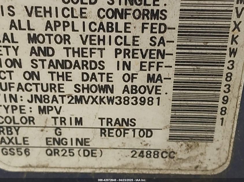 2019 NISSAN ROGUE – JN8AT2MVXKW383981