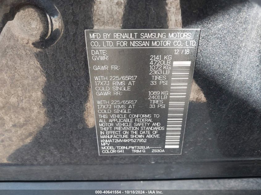 2019 NISSAN ROGUE – KNMAT2MV4KP527952