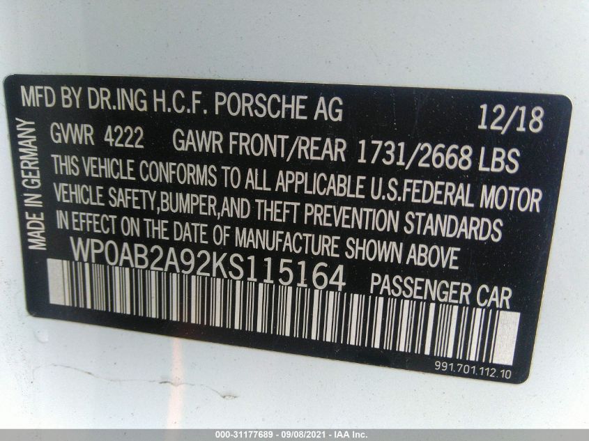 VIN: WP0AB2A92KS115164