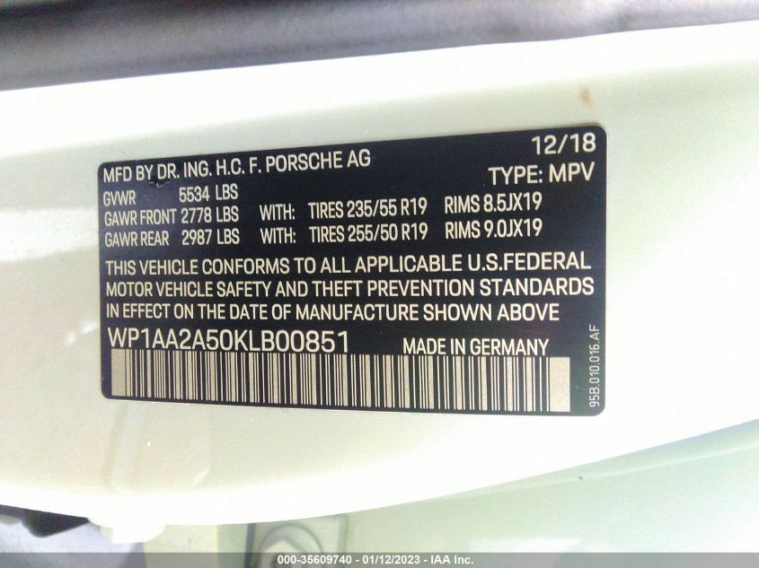 | VIN Number | WP1AA2A50KLB00851 |