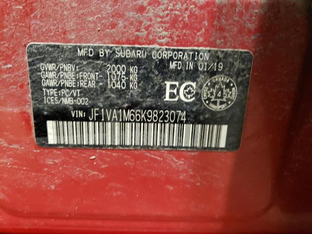 This 2019 Subaru WRX (Red) comes from a major insurance auction in the USA or Canada. All information on this page is linked to the vehicle’s VIN (JF1VA1M66K9823074), which helps confirm where the car was listed and what condition it was in at the time of sale.