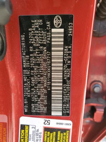 This 2019 TOYOTA CAMRY (RED) comes from a major insurance auction in the USA or Canada. All information on this page is linked to the vehicle’s VIN (4T1B11HKXKU167717), which helps confirm where the car was listed and what condition it was in at the time of sale.