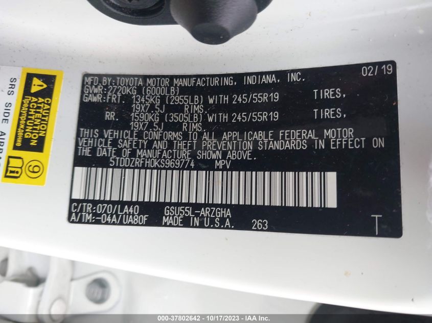 2019 TOYOTA HIGHLANDER – 5TDDZRFH0KS969774