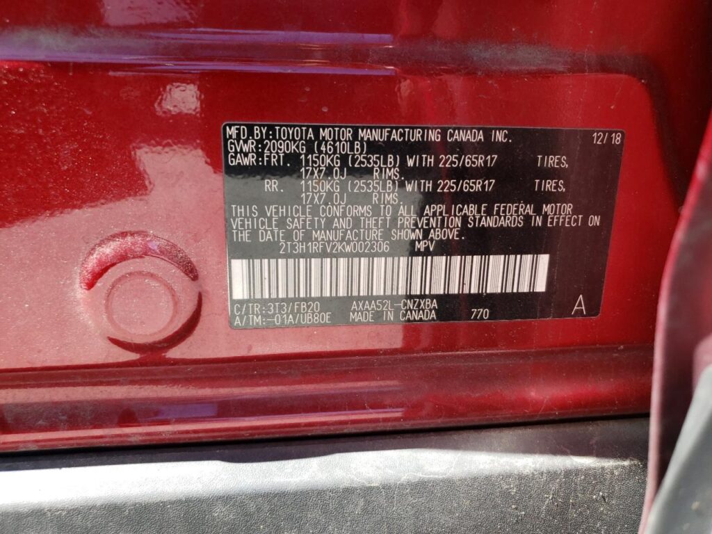 2019 Toyota RAV4 – 2T3H1RFV2KW002306