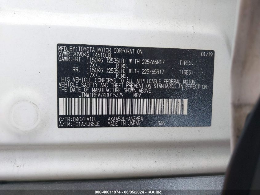 2019 TOYOTA RAV4 – JTMW1RFV7KD015329
