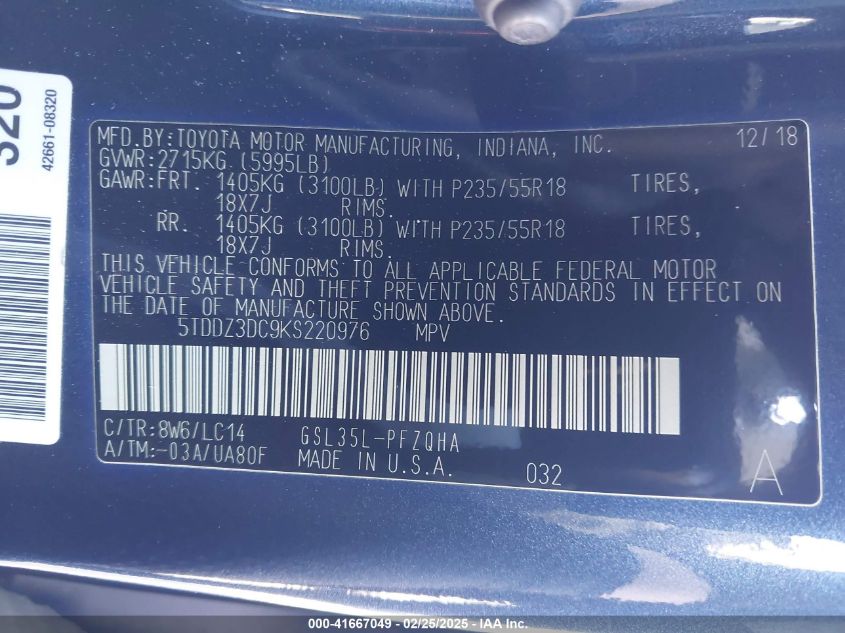 VIN Number5TDDZ3DC9KS220976