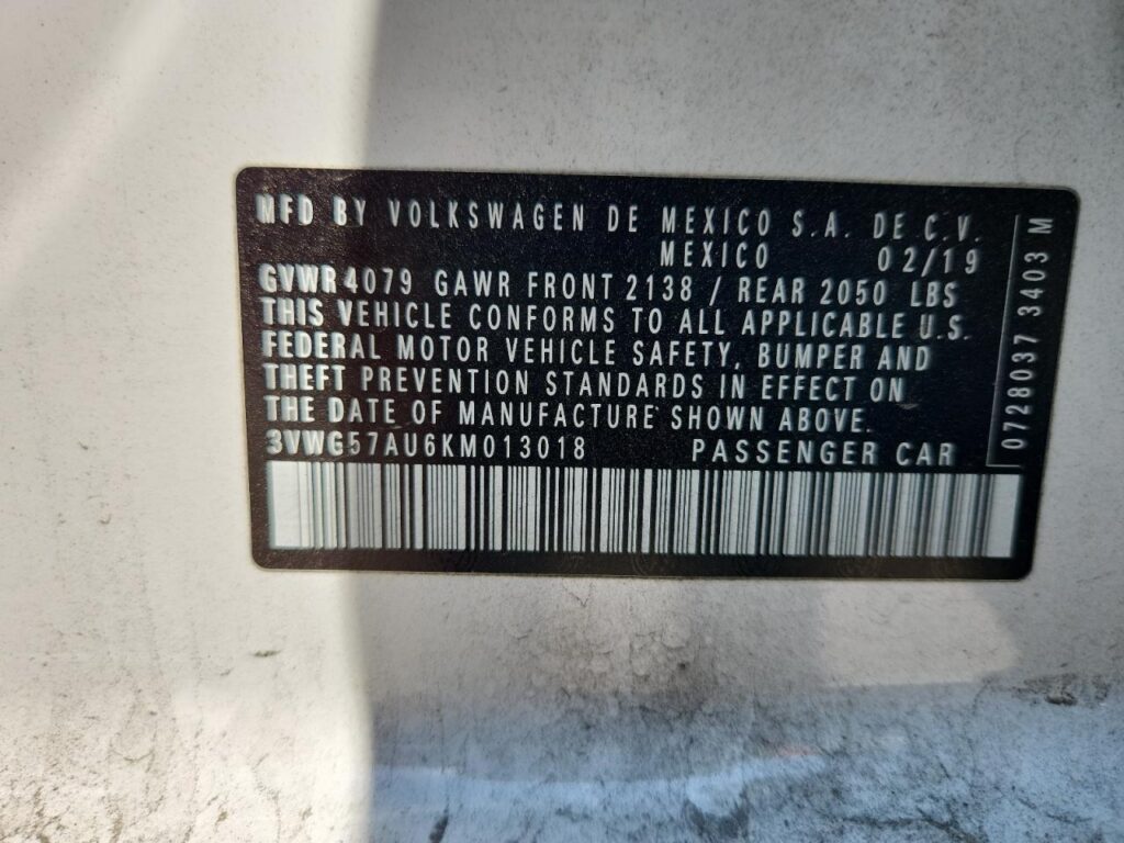 VIN: 3VWG57AU6KM013018