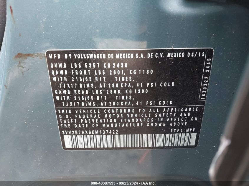 VIN Number3VV2B7AX6KM137422