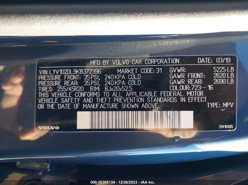 2019 Volvo XC60 – LYV102DL9KB372396