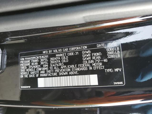 This 2019 VOLVO XC90 (BLACK) comes from a major insurance auction in the USA or Canada. All information on this page is linked to the vehicle’s VIN (YV4A22PK2K1516291), which helps confirm where the car was listed and what condition it was in at the time of sale.