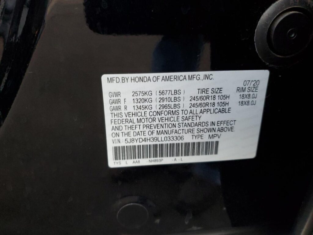 | VIN Number | 5J8YD4H39LL033306 |