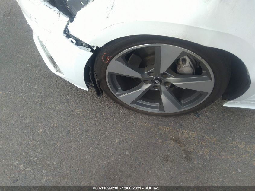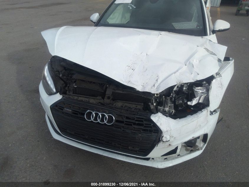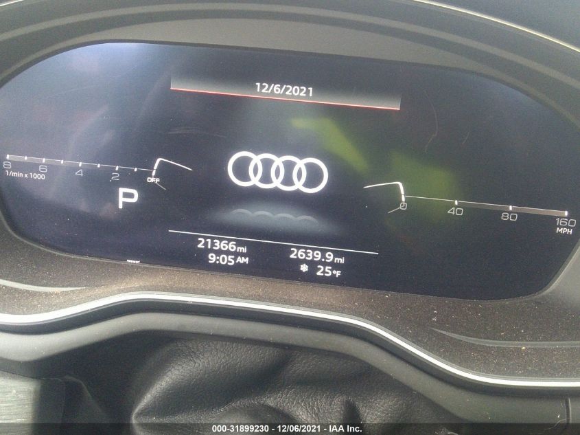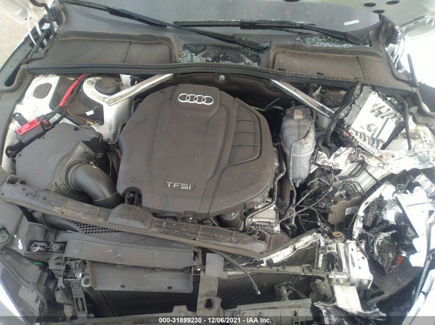 This 2020 Audi A5 Sportback (White) is equipped with an engine designed to balance performance and efficiency. According to the auction listing, the vehicle had 21,366 miles at the time of sale.