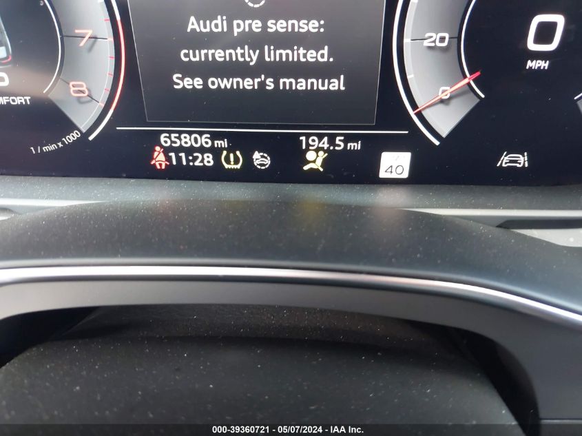 This 2020 AUDI A6 (Black) is equipped with an engine designed to balance performance and efficiency. According to the auction listing, the vehicle had 65,806 miles at the time of sale.