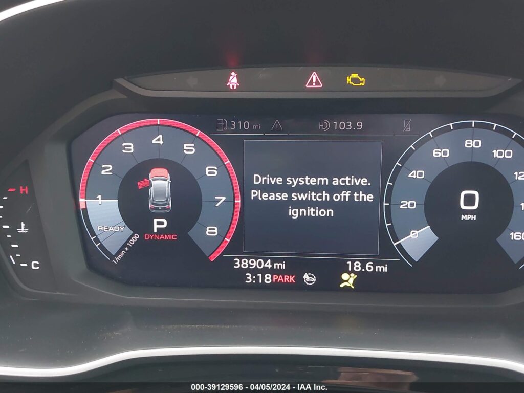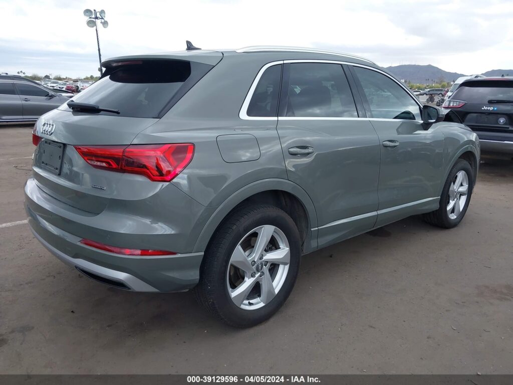 This 2020 Audi Q3 (Grey) is equipped with an engine designed to balance performance and efficiency. According to the auction listing, the vehicle had 38,904 miles at the time of sale.