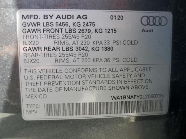 This 2020 Audi Q5 (Charcoal) comes from a major insurance auction in the USA or Canada. All information on this page is linked to the vehicle’s VIN (WA1BNAFY0L2060795), which helps confirm where the car was listed and what condition it was in at the time of sale.