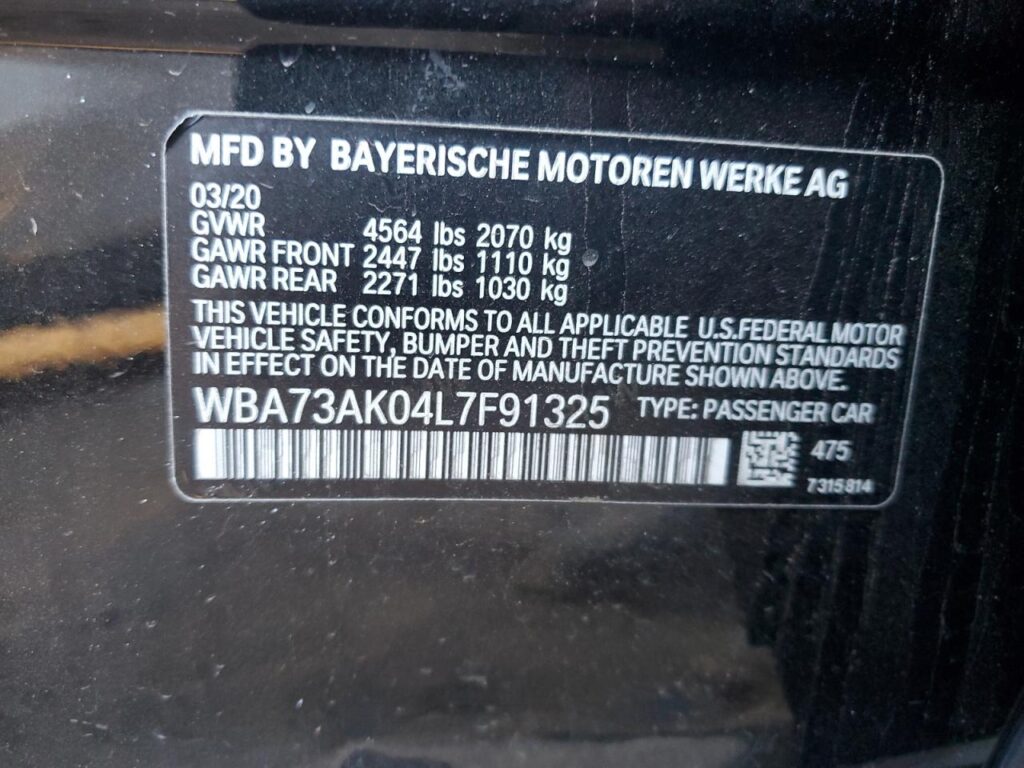 | VIN Number | WBA73AK04L7F91325 |