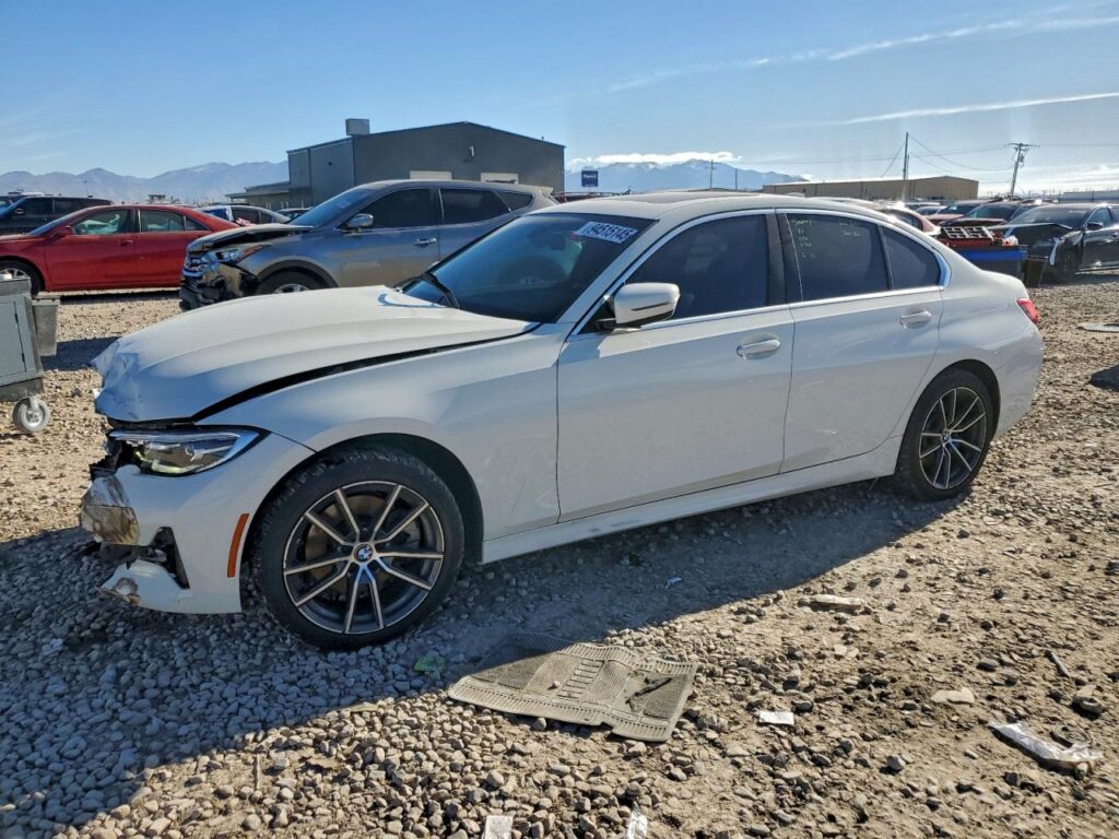 This 2020 BMW 3 Series (White) is equipped with an engine designed to balance performance and efficiency. According to the auction listing, the vehicle had 78,097 miles at the time of sale.