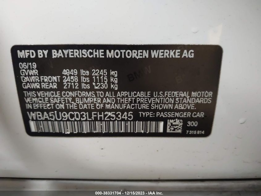 | VIN Number | WBA5U9C03LFH25345 |