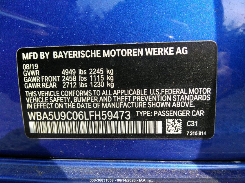 | VIN Number | WBA5U9C06LFH59473 |