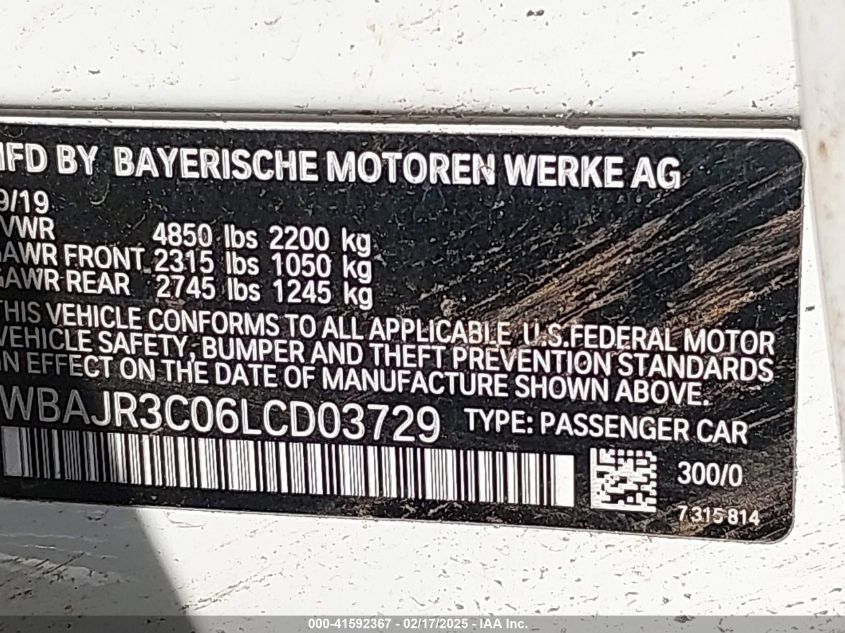 This 2020 BMW 530 (Unknown Color) comes from a major insurance auction in the USA or Canada. All information on this page is linked to the vehicle’s VIN (WBAJR3C06LCD03729), which helps confirm where the car was listed and what condition it was in at the time of sale.