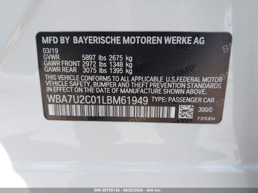 This 2020 BMW 750I (Unknown Color) comes from a major insurance auction in the USA or Canada. All information on this page is linked to the vehicle’s VIN (WBA7U2C01LBM61949), which helps confirm where the car was listed and what condition it was in at the time of sale.