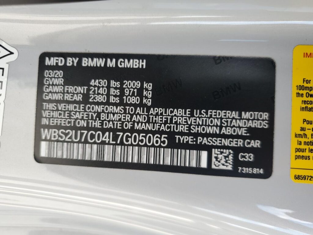 This 2020 BMW M2 (White) comes from a major insurance auction in the USA or Canada. All information on this page is linked to the vehicle’s VIN (WBS2U7C04L7G05065), which helps confirm where the car was listed and what condition it was in at the time of sale.