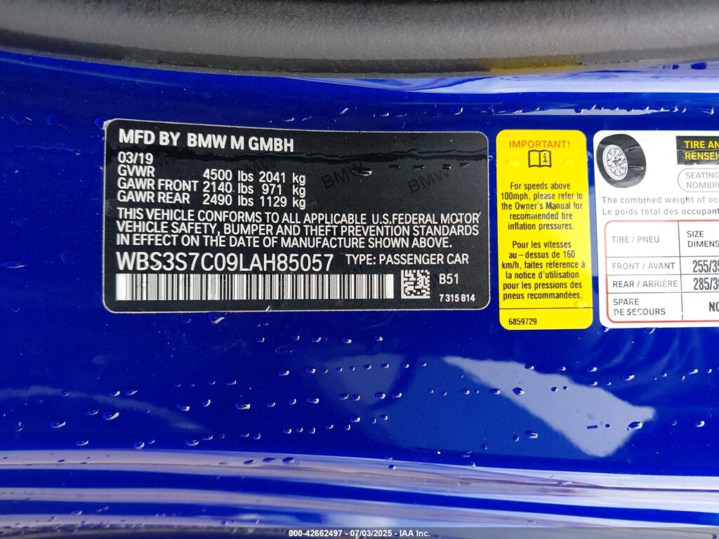 This 2020 BMW M4 (Blue) comes from a major insurance auction in the USA or Canada. All information on this page is linked to the vehicle’s VIN (WBS3S7C09LAH85057), which helps confirm where the car was listed and what condition it was in at the time of sale.