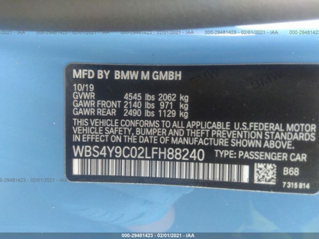 2020 BMW M4 – WBS4Y9C02LFH88240