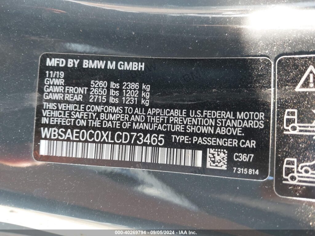 | VIN Number | WBSAE0C0XLCD73465 |