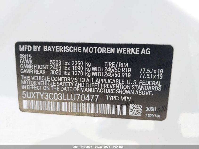 2020 BMW X3 – 5UXTY3C03LLU70477