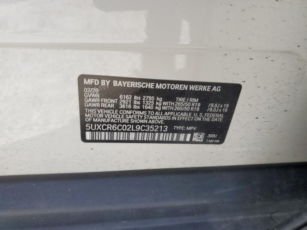 This 2020 BMW X5 (WHITE) comes from a major insurance auction in the USA or Canada. All information on this page is linked to the vehicle’s VIN (5UXCR6C02L9C35213), which helps confirm where the car was listed and what condition it was in at the time of sale.