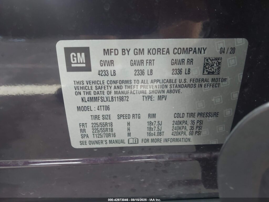 | VIN Number | KL4MMFSLXLB119872 |