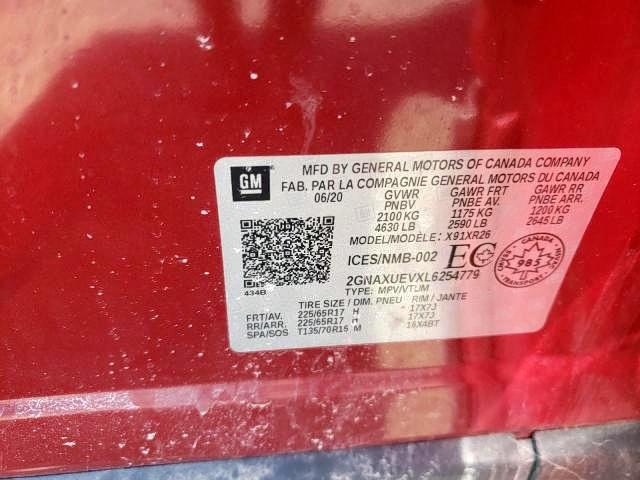 This 2020 Chevrolet Equinox (Red) comes from a major insurance auction in the USA or Canada. All information on this page is linked to the vehicle’s VIN (2GNAXUEVXL6254779), which helps confirm where the car was listed and what condition it was in at the time of sale.