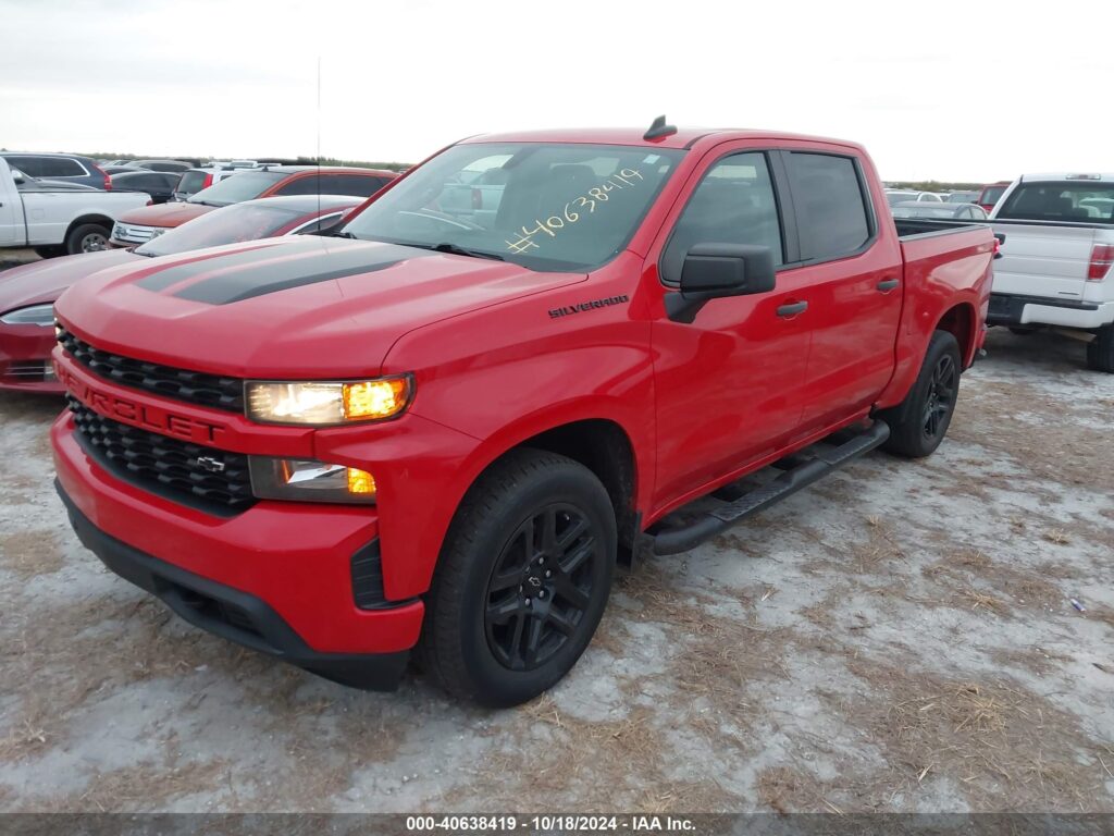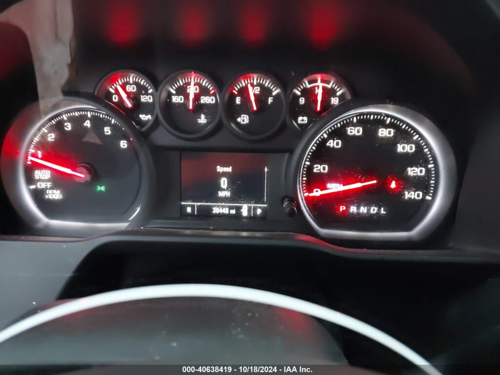 This 2020 Chevrolet Silverado 1500 (Red) is equipped with an engine designed to balance performance and efficiency. According to the auction listing, the vehicle had 38,448 miles at the time of sale.