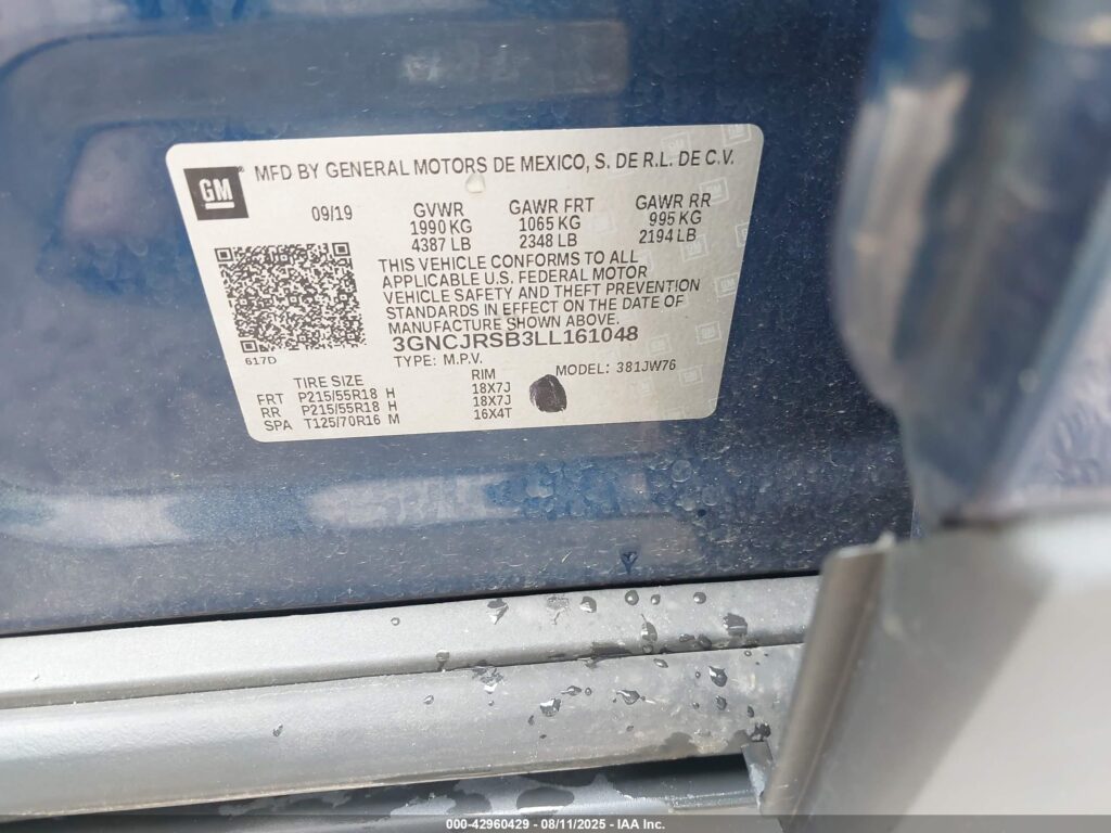 | VIN Number | 3GNCJRSB3LL161048 |