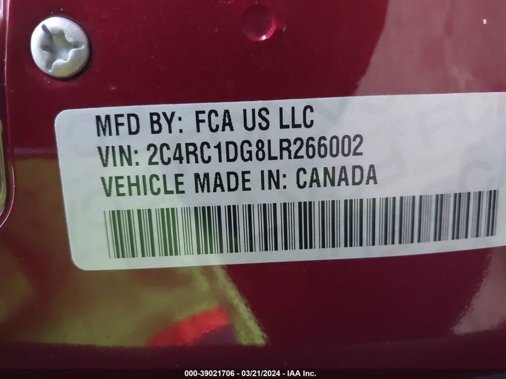 | VIN Number | 2C4RC1DG8LR266002 |